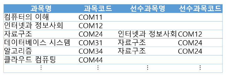단, 선수과목이 없는 과목도 결과에 포함시킨다.
