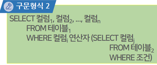 - WHERE 절에서의 결과 집합을 활용하여 외부 질의에서 레코드의 출력 여부를 결정