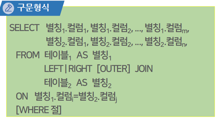 | 외부 조인의 종류 | 외부 조인 구문형식 |