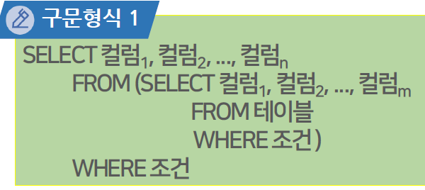 - FROM 절에서의 결과 집합을 SELECT에서 재검색