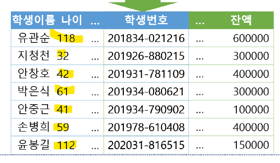 ALTER VIEW 고객계좌_보유자 AS ( SELECT A.학생번호, A.학생이름, A.나이, A.전화번호, B.계좌번호, B.잔액 FROM 학생 A NATURAL JOIN 계좌 B WHERE B.잔액 >= 800000 ); |