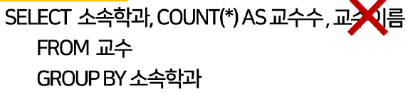 → 집계 함수(COUNT)와 그룹의 기준(소속학과)이 되는 것 이외에는 포함 불가