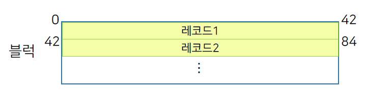 하나의 블럭에 여러 개의 레코드가 들어가는 구조로 되어 있음.