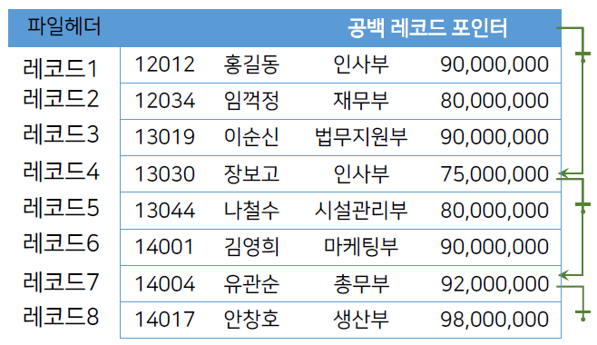 고정적인 바이트 수를 갖는 레코드를 저장하는 기법