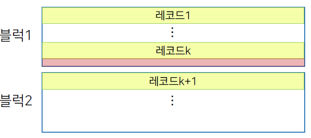 | 블럭 내의 남은 공간 낭비 | 레코드 접근 시 두 블럭을 접근하므로 성능 저하 |