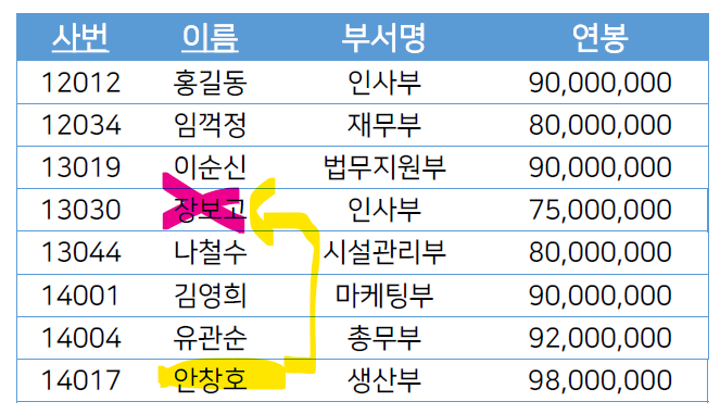 | 단점 | - 레코드 삽입, 삭제에 많은 비용 소요 |