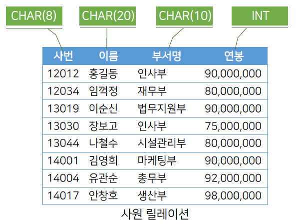 | 레코드 | 블럭을 구성하는 요소 더 이상 분리될 수 없는 최소 데이터 저장 단위 한 릴레이션 내부의 각 레코드마다 길이가 같은 것(고정 길이 레코드)이 있고, 다른 것(가변 길이 레코드)이 있음. |