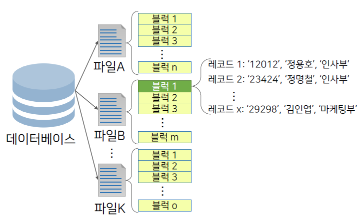 - 데이터베이스 내 파일은 수만 여 개의 블럭으로 구성되어 있음.