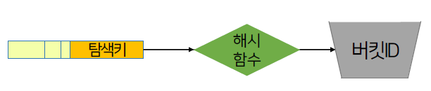 - h(Ki)을 통하여 버킷 주소를 생성하고 버킷에 저장된 레코드 접근