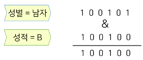 성별의 '남자'와 성적의 'B'의 비트열에 대한 비트 논리곱 연산을 수행