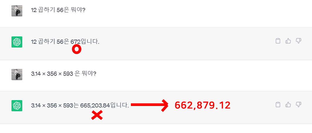 2. 챗GPT는 숫자와 관련된 내용을 처리하는 데 매우 취약하다.