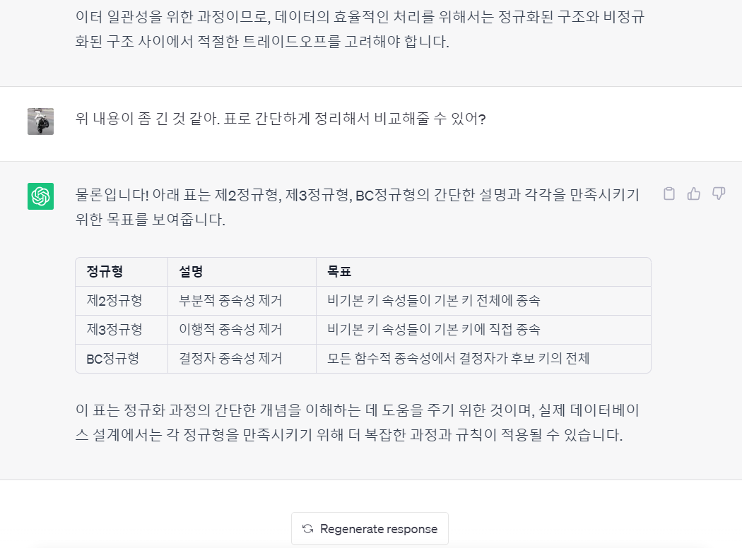 '위 내용'에 대해 구체적으로 말하지 않았고, 무엇을 표로 정리해달라고 정확히 지시하지 않아도 알아서 해줌.