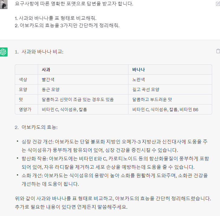 3. 원하는 답변 형식을 지정하기(포맷팅)