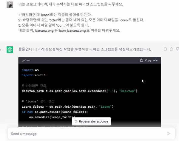 챗GPT에게 코드를 받아서 VScode에 붙여넣고 실행하면 된다.