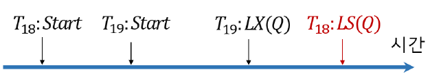 · T18이 T19에 의해 점유된 데이터 항목을 요청하면 T18은 기다려야 함.