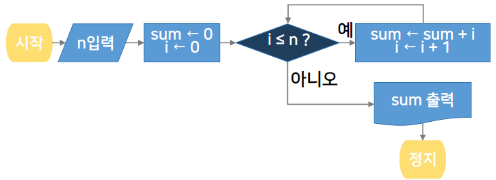 위 알고리즘은 1부터 n(사용자가 입력한 수)의 합을 나타냄을 알 수 있음.