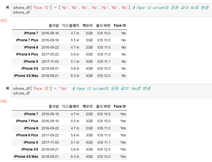 # for 반복문으로 해당하는 "열"에 "값" 넣어주기