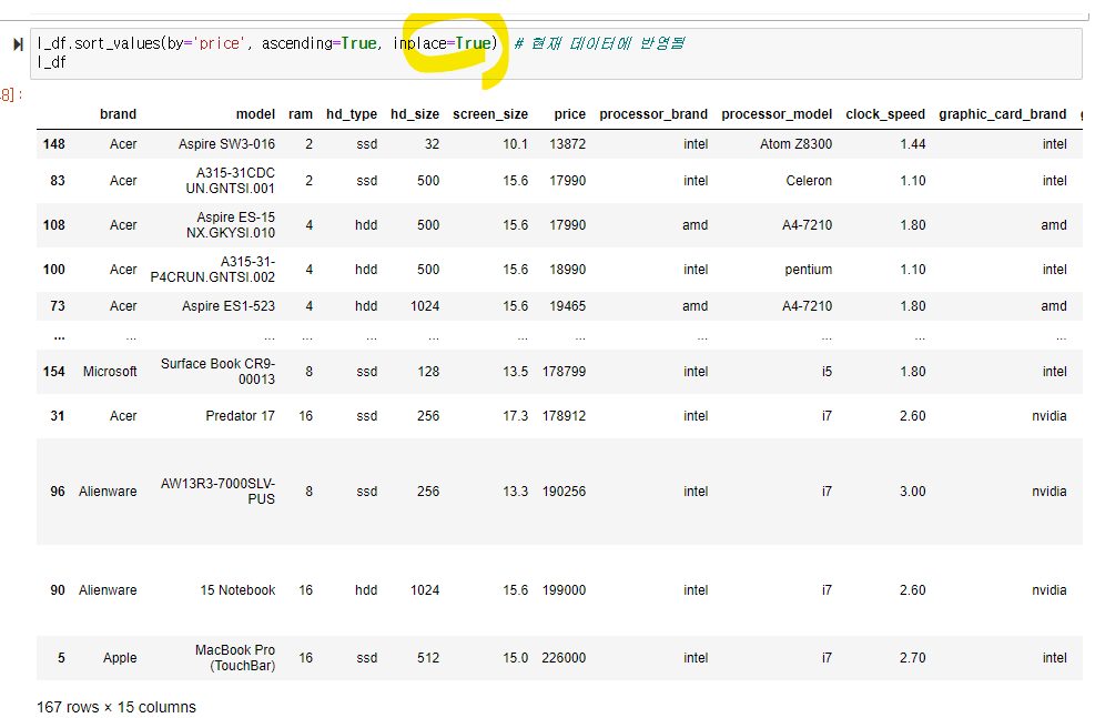 → inplace=True를 해야 현재 데이터에 반영됨.