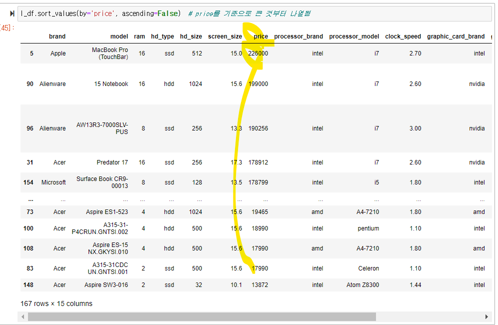 sort.values를 하면 정렬된 새로운 데이터프레임 생성
