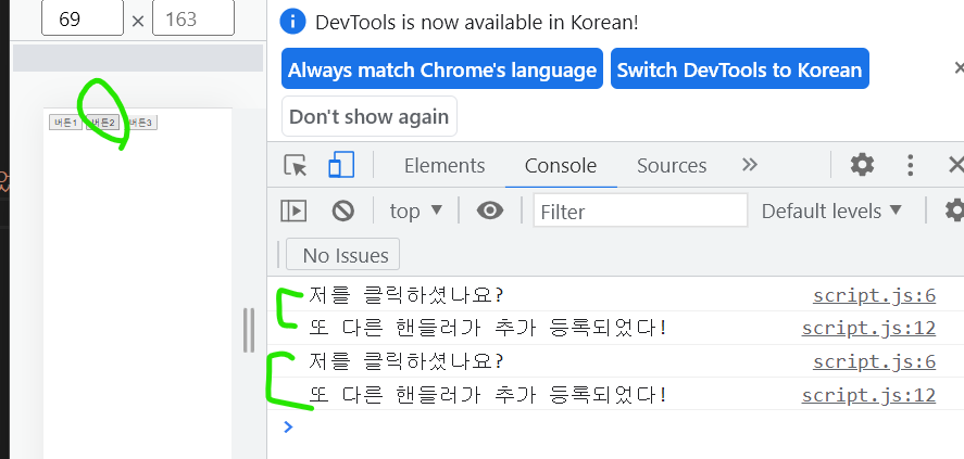버튼을 누를 때마다 div가 생성되는 것을 확인할 수 있음.