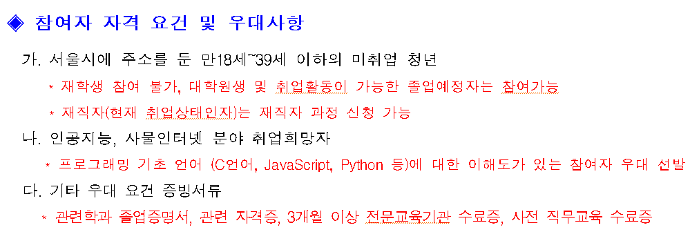 자격 요건에 겁먹지 않아도 된다. 어떤 교육보다 굉장히 관대한 조건을 내세우고 있다.