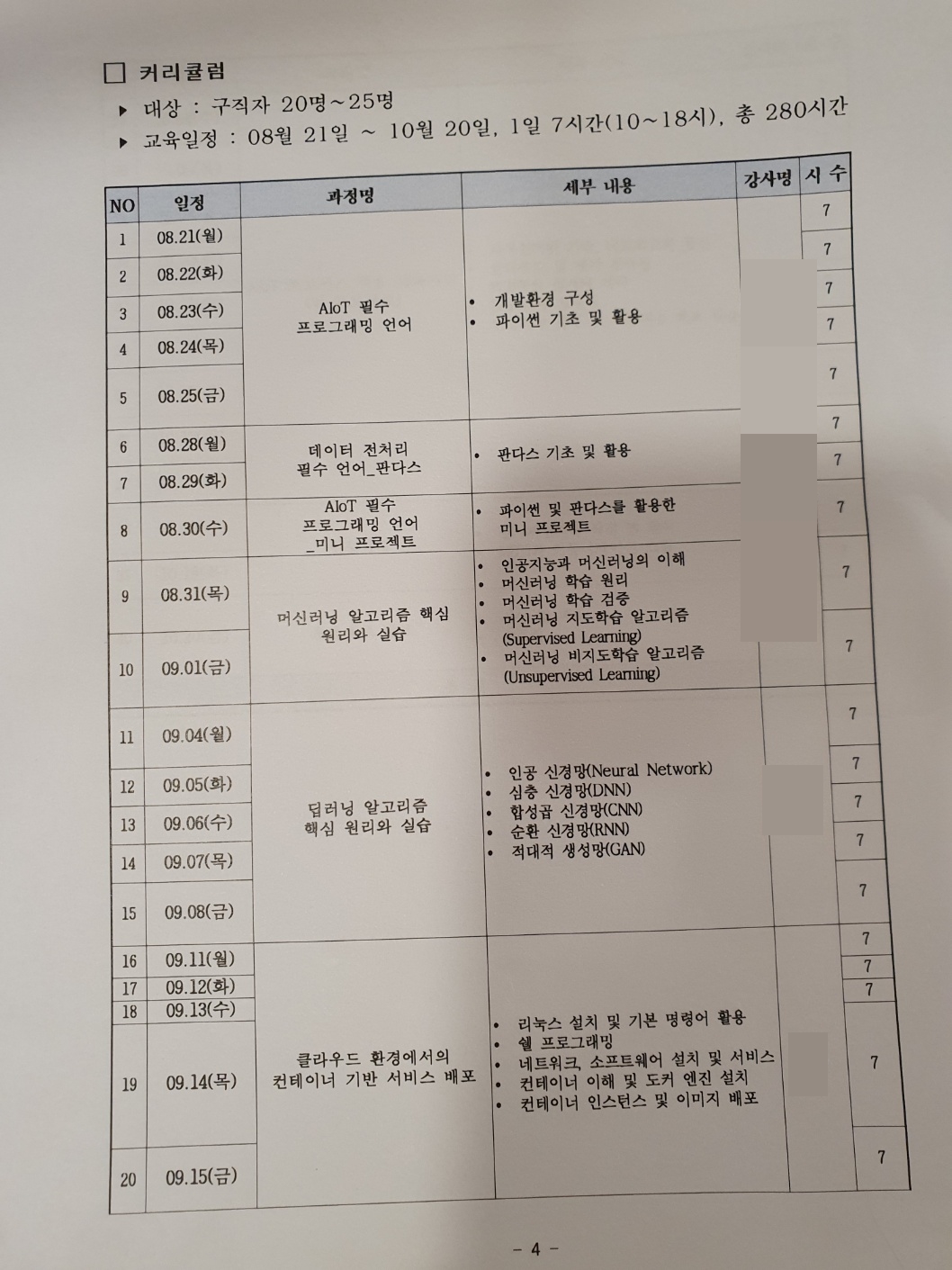 - AI를 어느 정도 할 줄 아는 사람이라 프로젝트 하나 만들어보고 싶은 사람 : AI를 다룰 줄 아는 사람은 앞선 교육은 좀 시시하겠지만, 강사가 신경써서 피드백을 해주니 수준 높은 프로젝트를 진행할 수 있음.