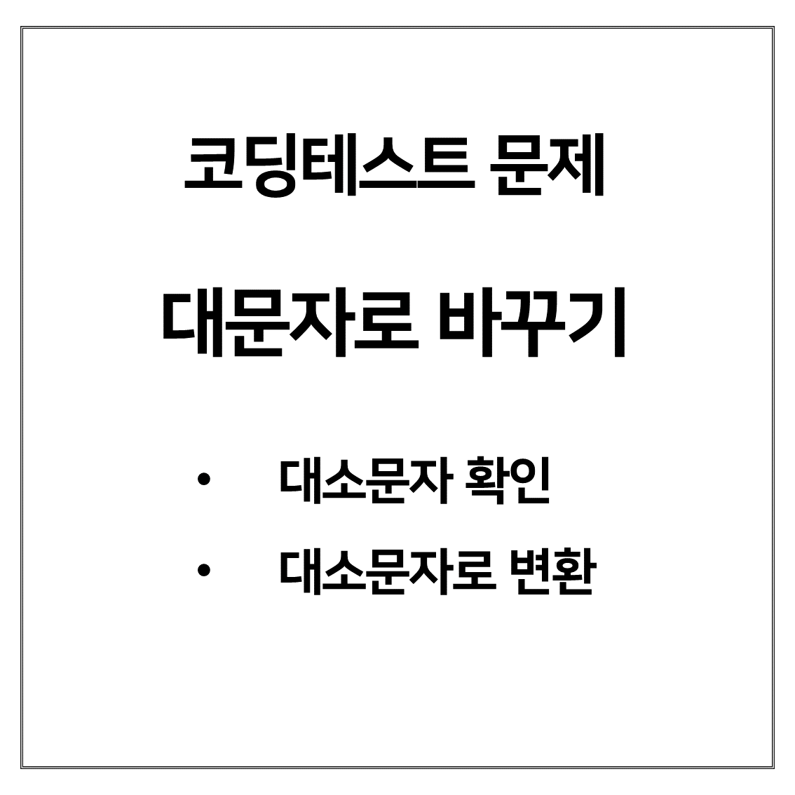 - 이 문제에서 난이도를 더 올리려면 '대문자는 소문자로', '소문자는 대문자로' 변환하라고 할 수 있음.
