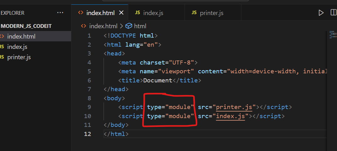 · HTML파일에서 자바스크립트 파일을 불러올 때 모듈 스코프를 갖게 하려면 script태그에 type속성을 module이라는 값으로 지정해 주어야 함.