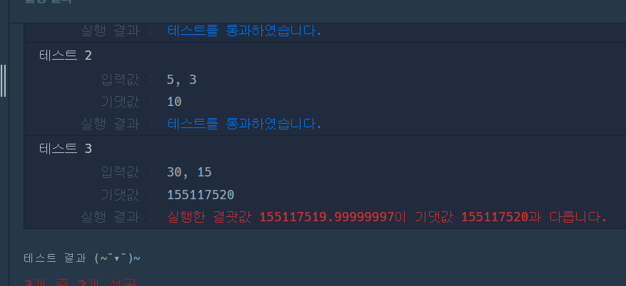 - 부동소수점 오류 때문에 맨 마지막에 Math.round를 해줘야 통과가 가능함.