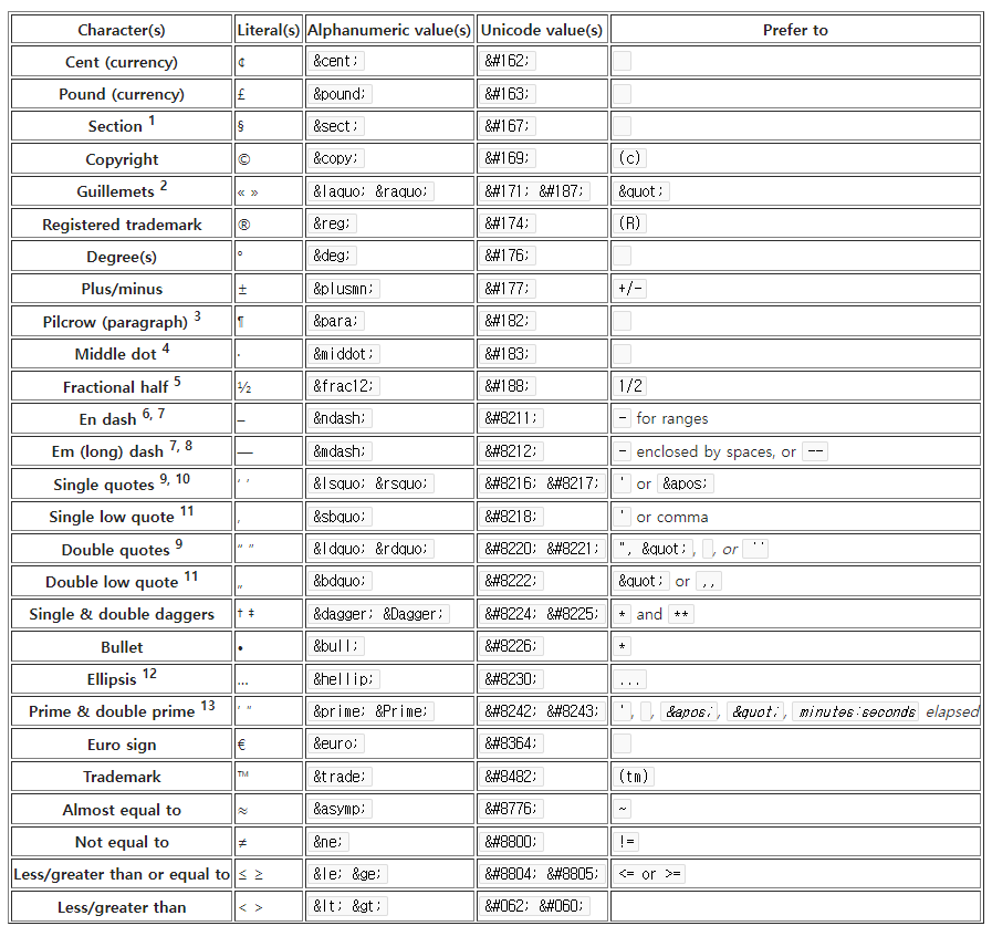https://www.w3.org/wiki/Common_HTML_entities_used_for_typography