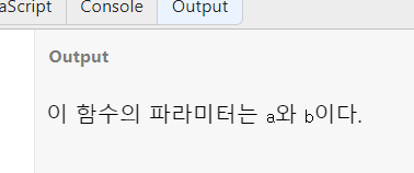 <p>이 함수의 파라미터는 <code>a</code>와 <code>b</code>이다.</p>