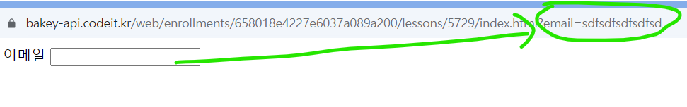 · 뒤에 있는 값 : 웹 브라우저에서 입력한 값