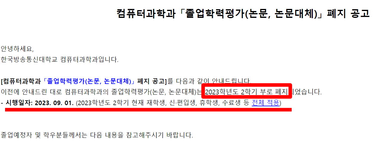 - 합격하고 알게 된 건데, 방송대 컴퓨터공학과의 자격증 취득 졸업요건은 23년 9월에 폐지되었다. 그냥 정해진 학점만 이수하면 자동으로 졸업이 된다고 한다.