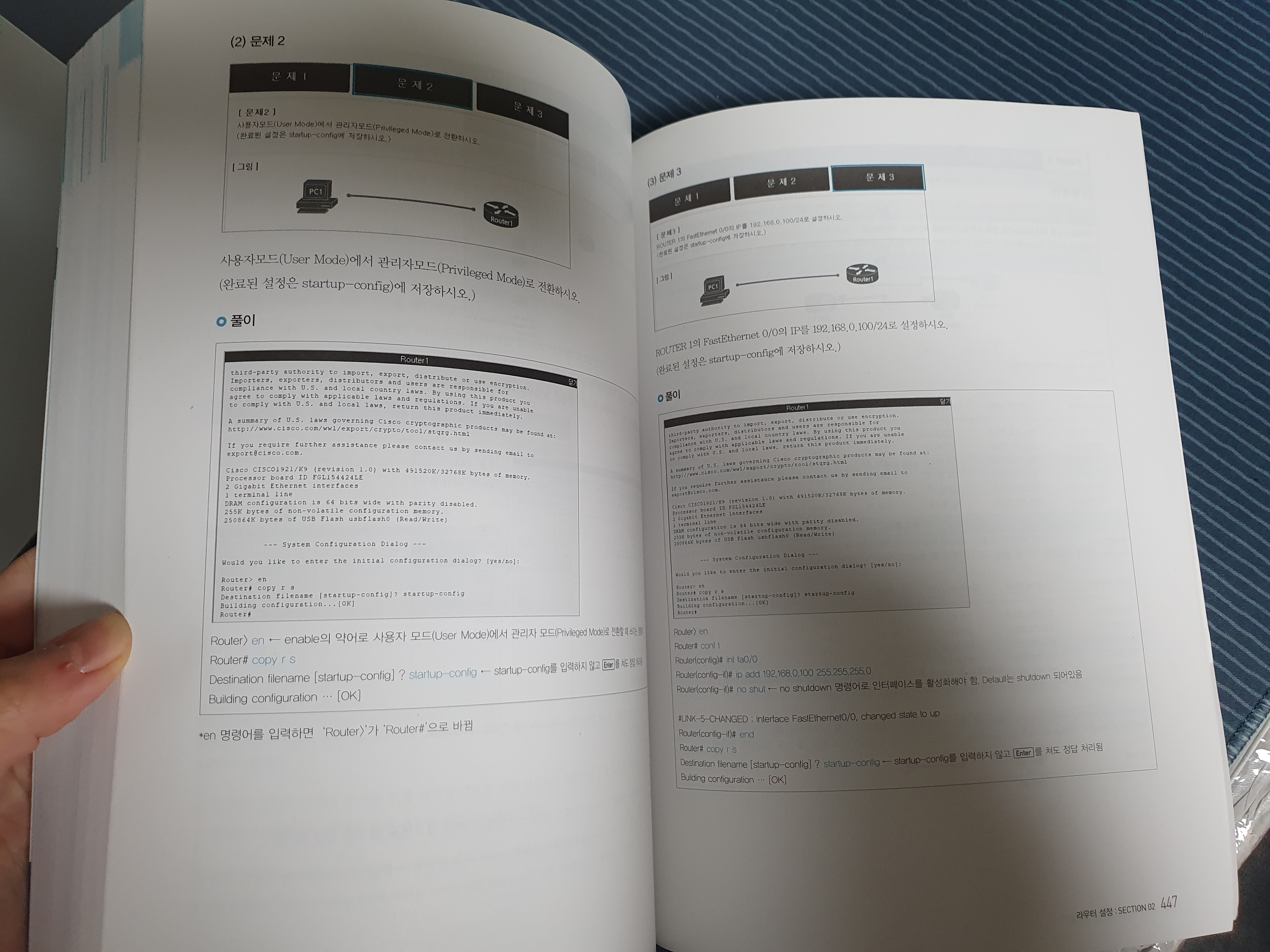 - 후딱 풀고 16번부터 18번까지 라우터 명령어 입력 문제로 넘어왔다. 3개 모두 기출문제와 동일하여서 문제 풀고 검토하는 것까지 1분도 걸리지 않았다.
