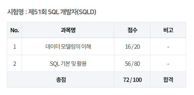 SQLD 데이터자격검정 SQL 개발자 시험 합격 후기 본문