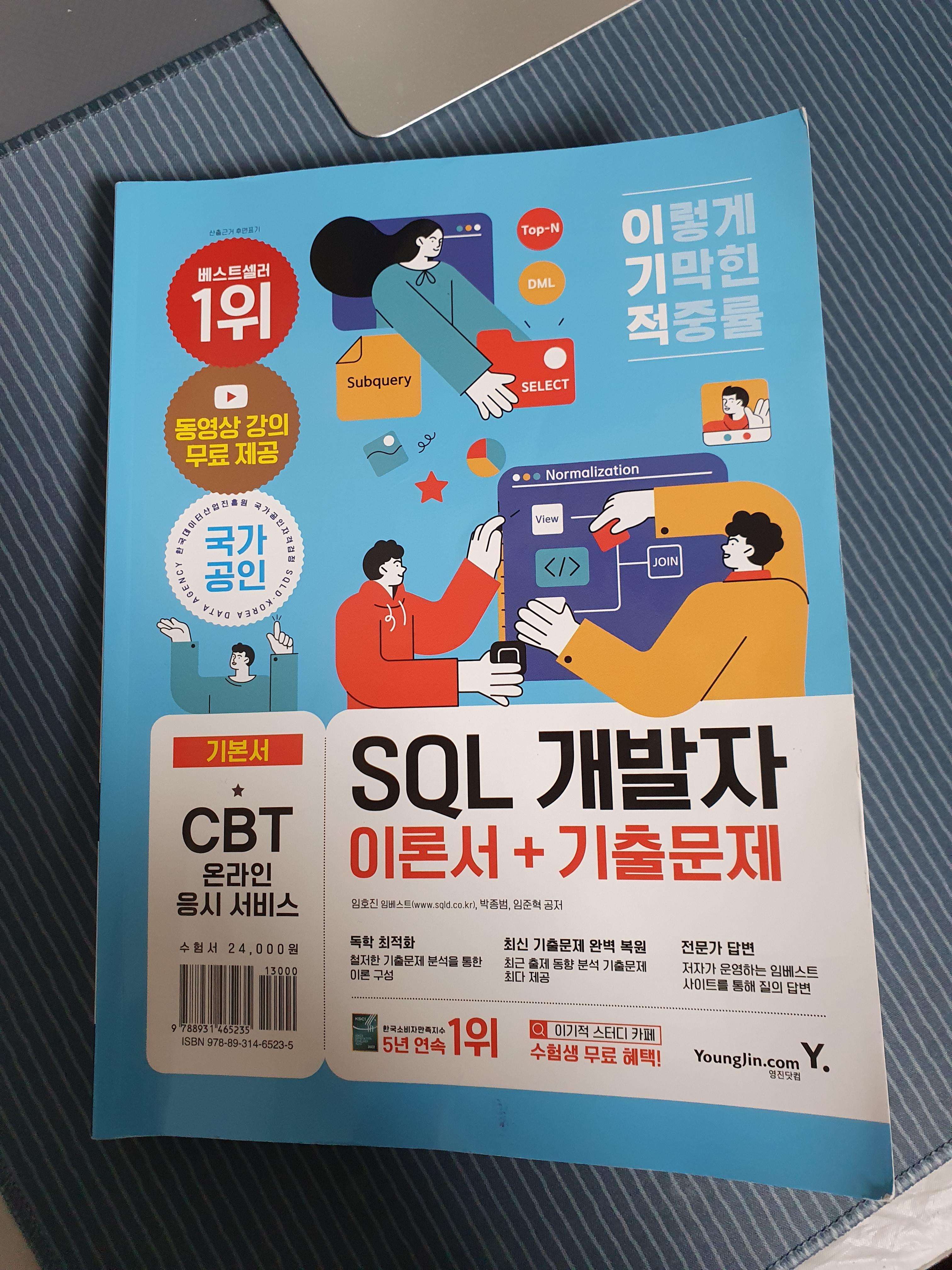 - 보통 노란색 책으로 유명한 'SQL 자격검정 실전문제' 한 권을 풀고, 부족한 부분은 구글링이나 영상을 보는 방식으로 대비한다.