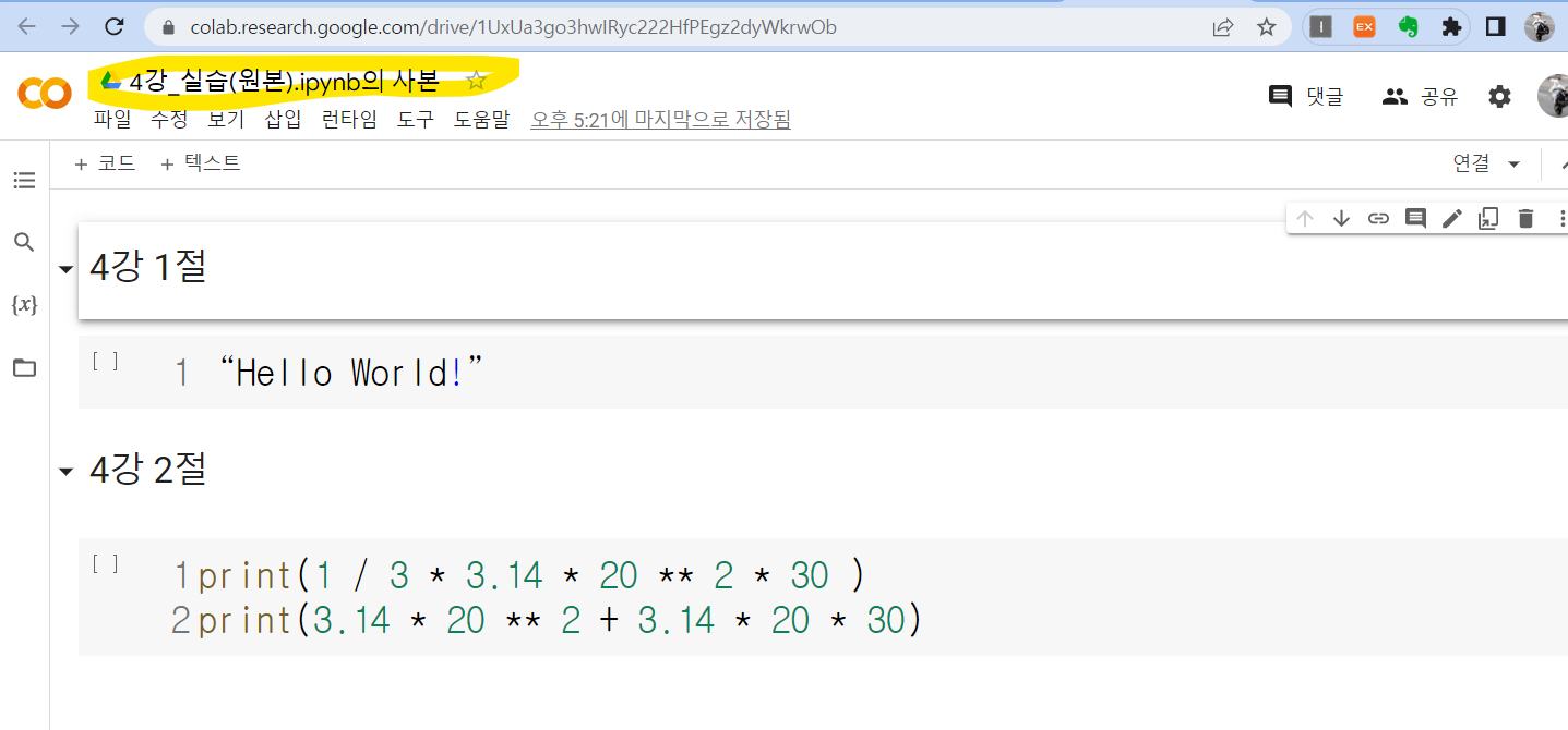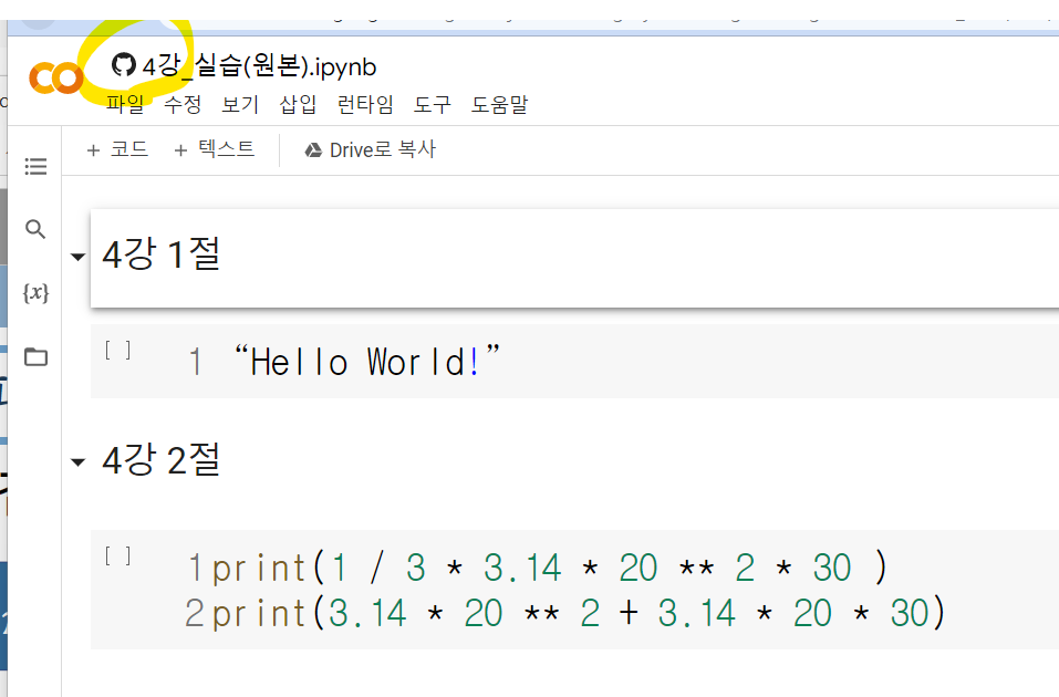GitHub의 파일들이 나의 Google Drive계정으로 복사됨.