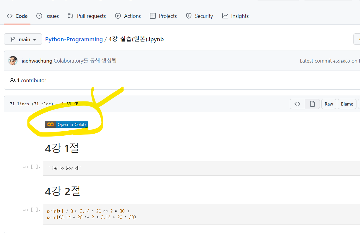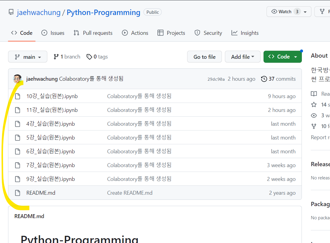 ※ 정재화 교수님 Github 계정에서 실습할 코드 다운받기