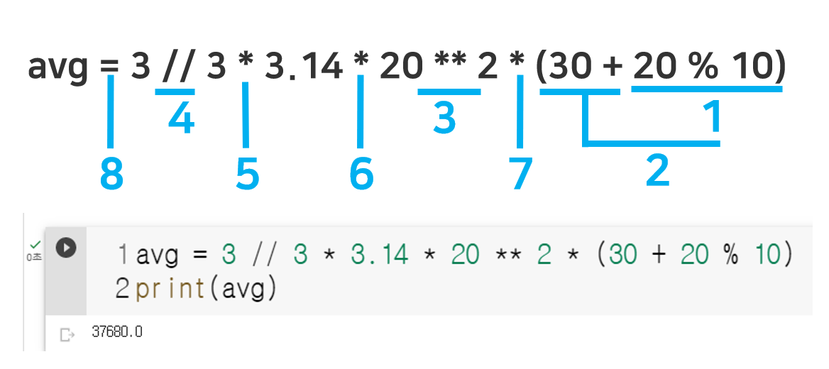 • 사칙연산은 일반적인 연산자 우선순위에 따라 계산됨.