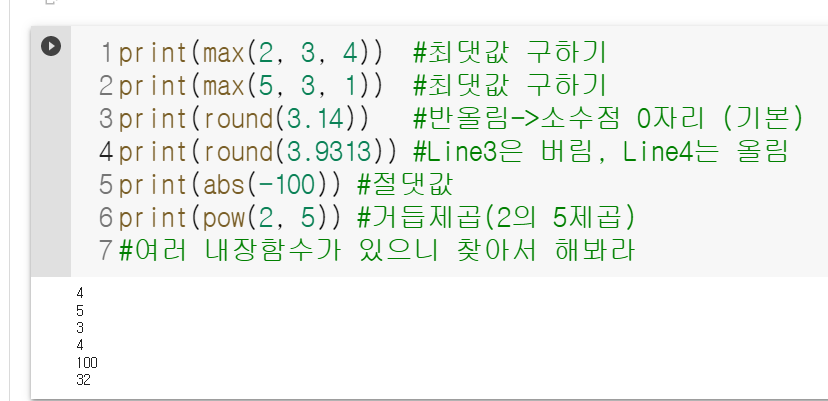 • 파이썬 인터프리터에서 기본적으로 지원하는 함수