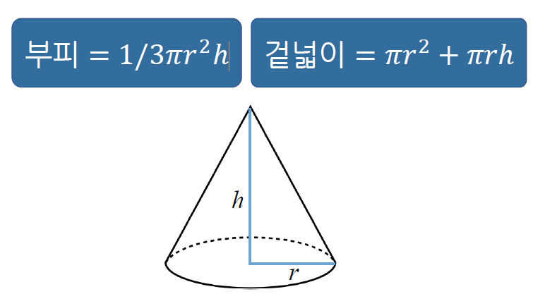 원뿔의 부피&겉넓이 계산 알고리즘부터 만들어야 한다.