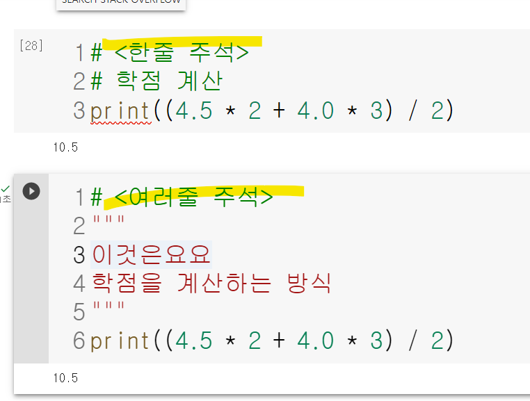· 여러 라인 : 주석에 """ 또는 ''' 3개를 연달아 사용