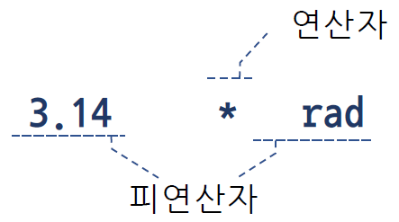 - 피연산자 : 연산의 대상 (ex. 3.14, rad)