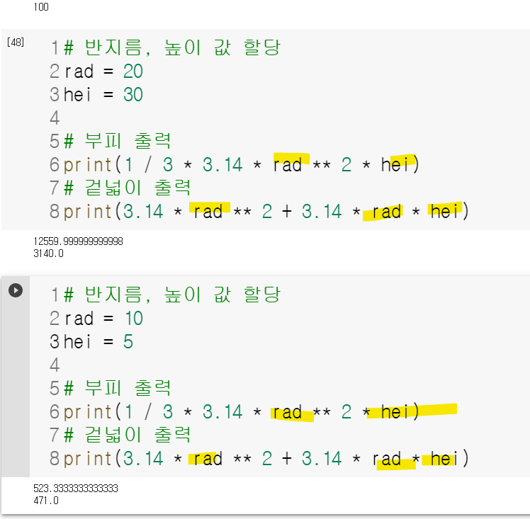 그러나 다양한 반지름과 높이를 여러 번 사용한다면 아주 비효율적인 코드가 됨.