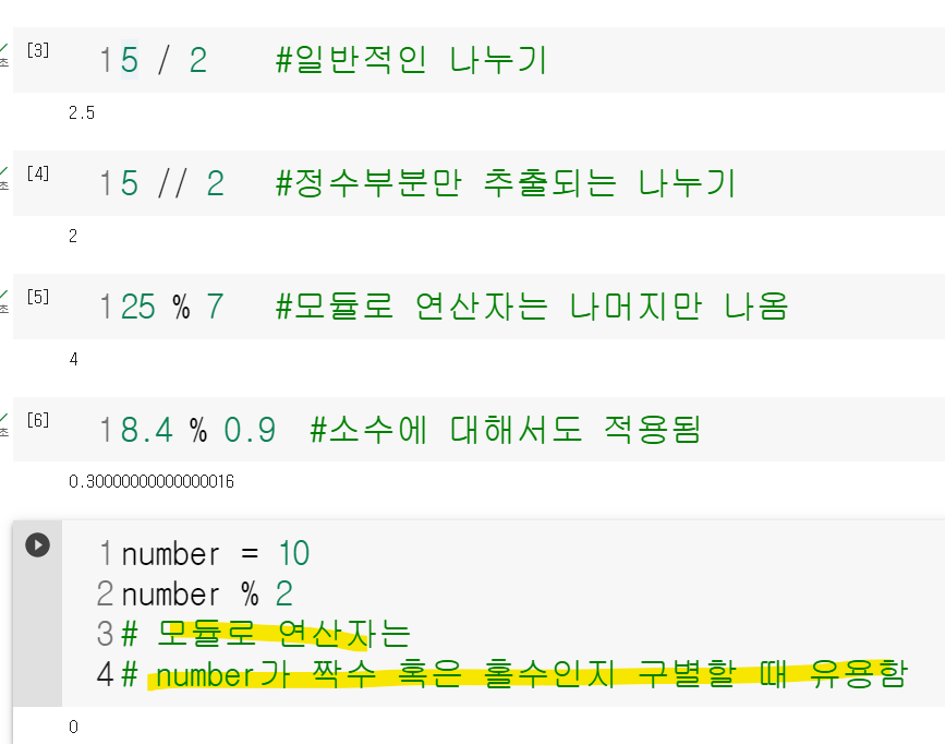 ·정수 나눗셈 연산자(//) : 나누기 후 몫만 가져오는 연산자