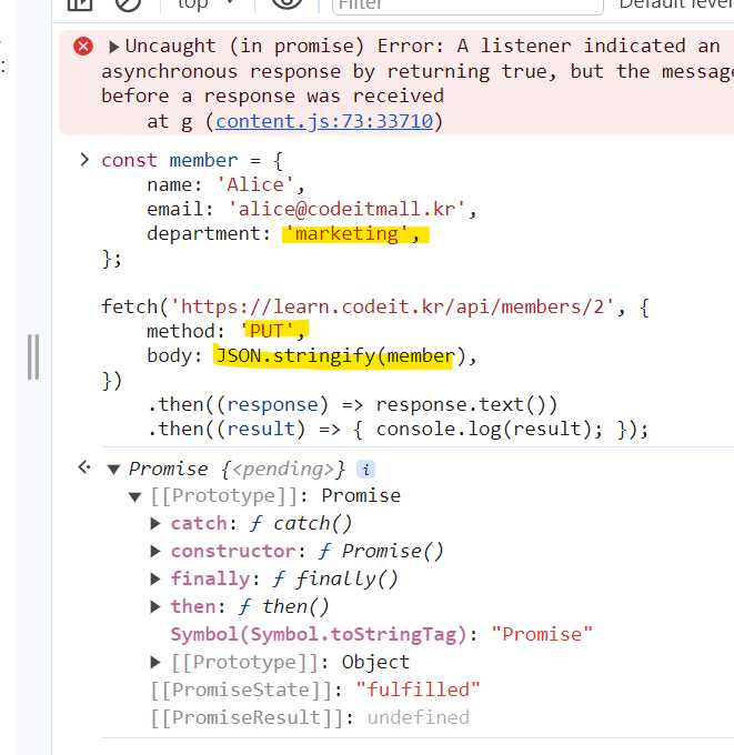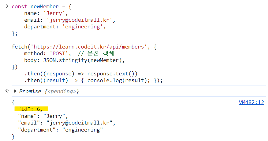 → application/x-www-form-urlencoded 타입의 데이터를 fetch 함수로도 손쉽게 보낼 수 있습니다.