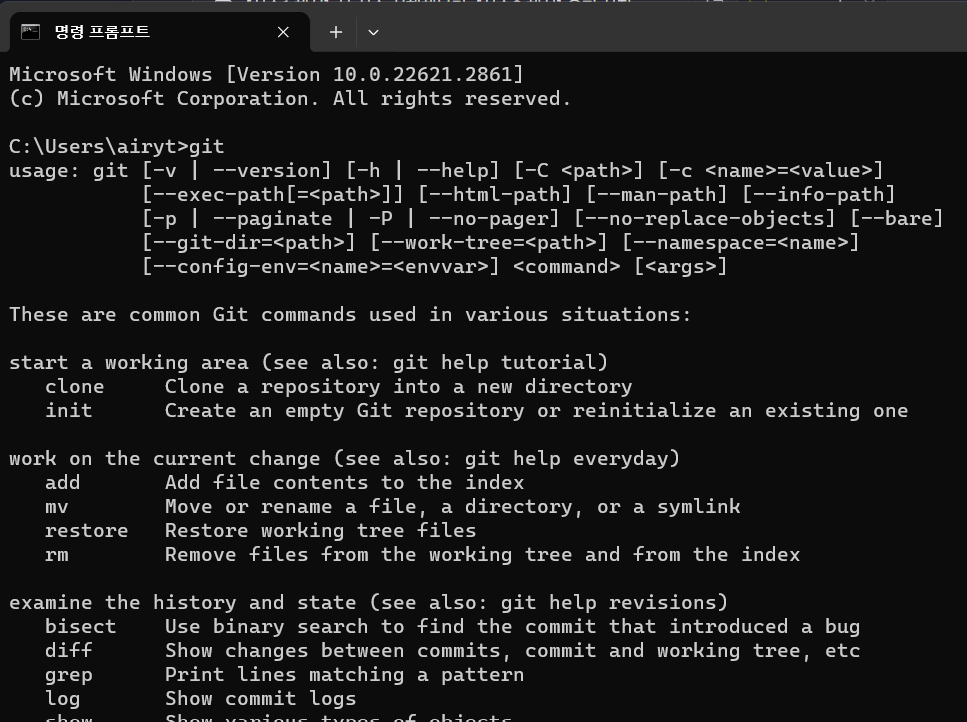 • git init : 기존의 디렉토리를 git repository로 설정 → git 저장소를 초기화